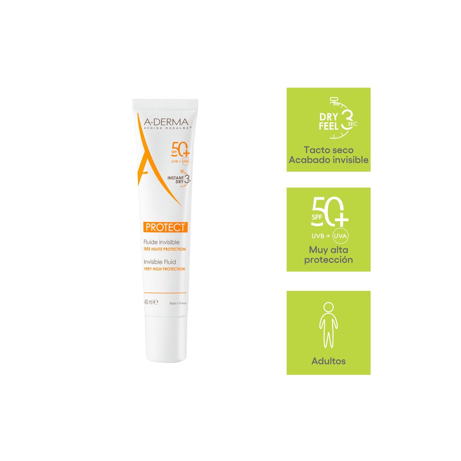 O creme fotoprotector A-derma SPF50 para pele normal e mista é um fluido fotoprotector para cuidar e proteger a pele normal e seca do sol. Inclui filtros solares antes da radiação UVA e UVB, além de reforçar e proteger a barreira cutânea graças à sua fórmula com óleo de semente de aveia Rhealba.