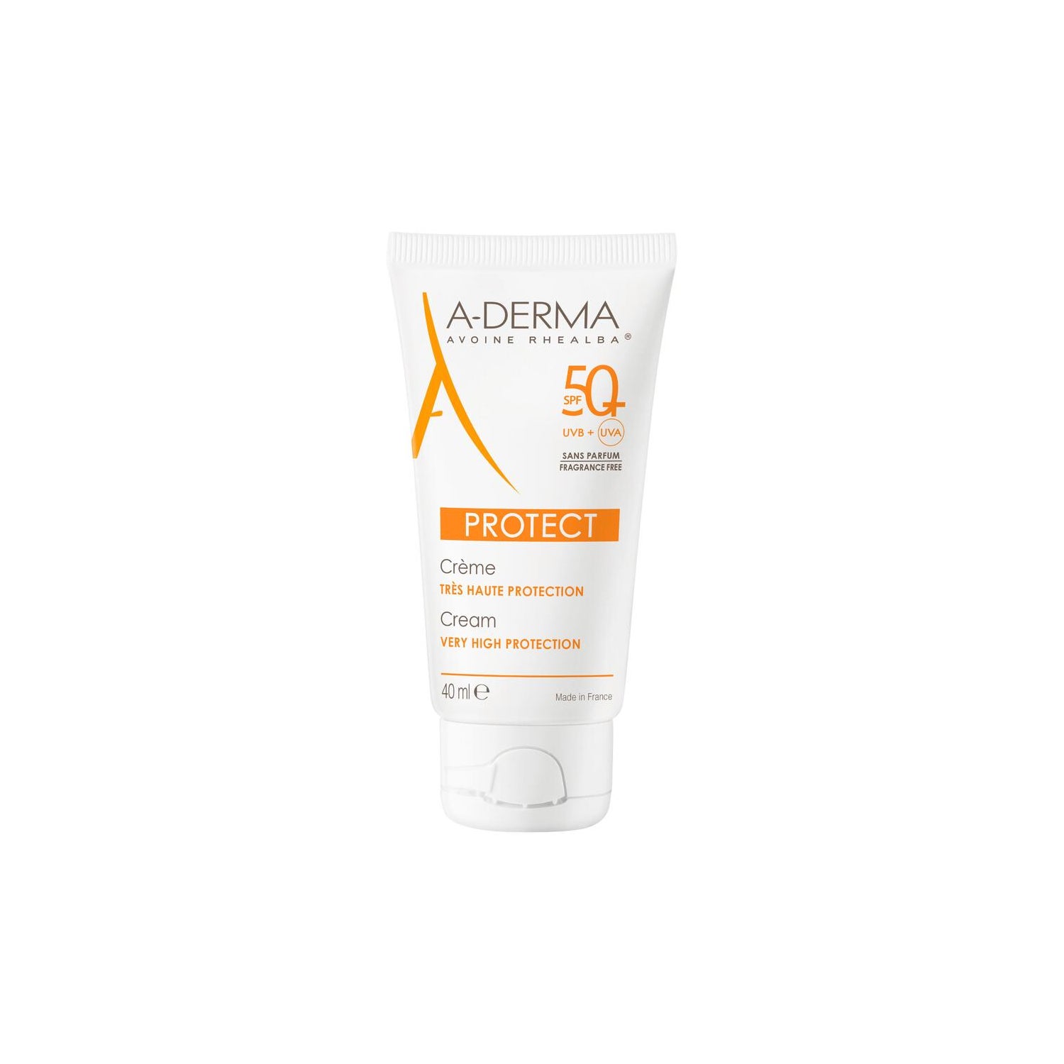 Aderma Sunscreen Protect Unscented Cream SPF50 40Ml é um protector solar para peles normais e secas, a sua textura fluida cuida e protege do sol. Inclui filtros solares contra as radiações UVA e UVB, além de reforçar e proteger a barreira cutânea graças à sua fórmula com óleo de semente de aveia Rhealba. É à prova de água.