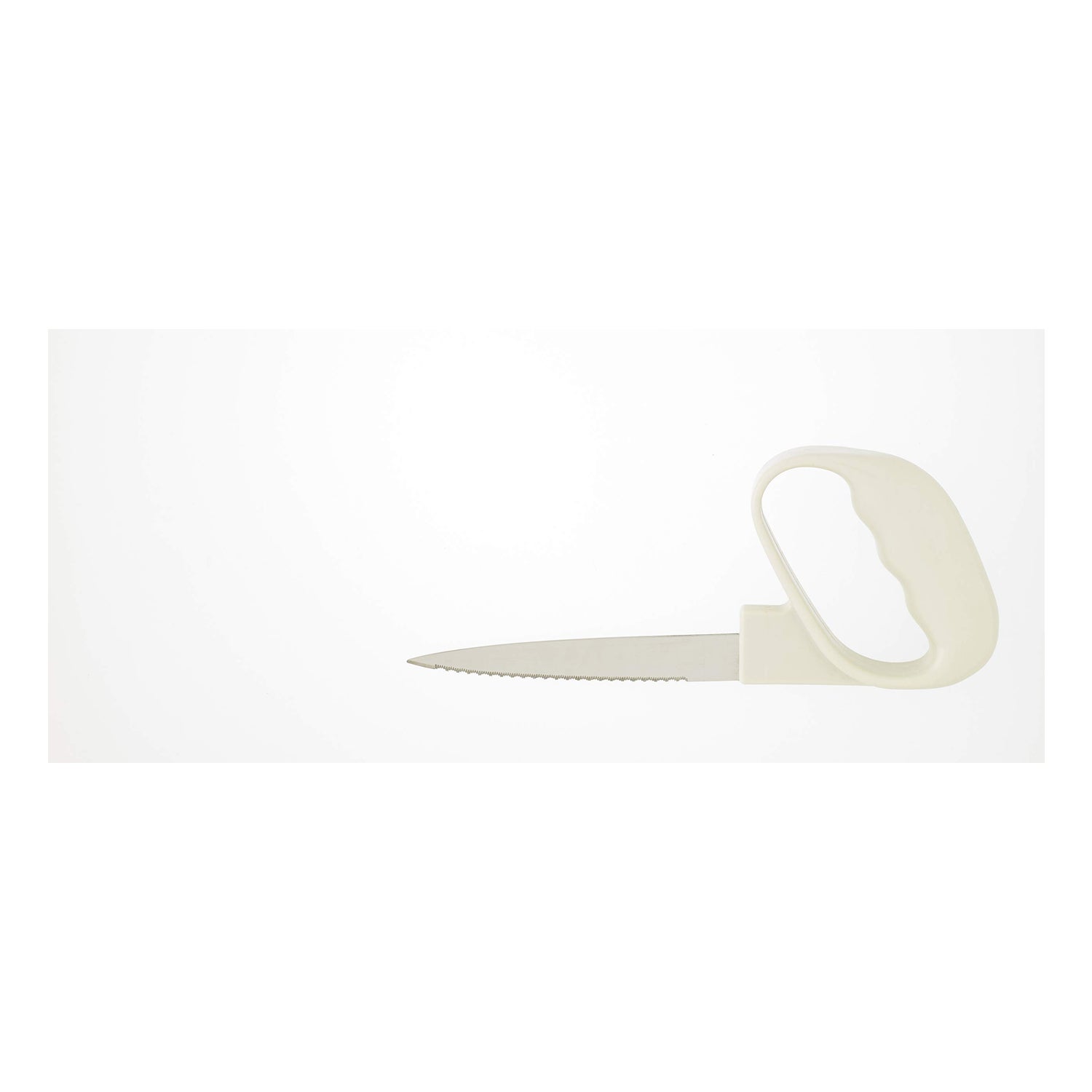 Ajuda Dinâmica Faca "reflex" De Preparação é um utensílio de cozinha projetado ergonomicamente para facilitar as tarefas de corte, especialmente indicado para pessoas com artrite e processos reumáticos. Seu design inovador permite que aqueles que têm dificuldades de mobilidade nas mãos e pulsos mantenham sua independência na cozinha.