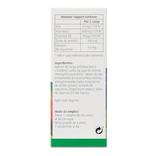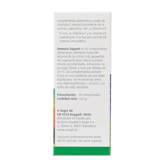 A. Vogel Immune Support 30comp é um suplemento alimentar à base de acerola, capuchinha, zinco e vitamina D provenientes da agricultura biológica. Adequado para veganos.