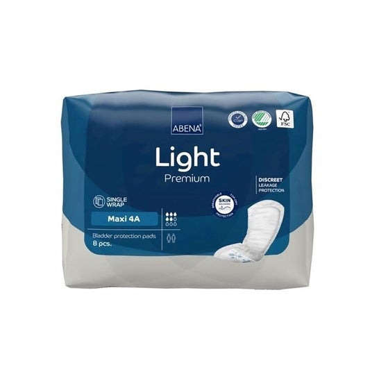 Abena Light Premium Protetores Pads Maxi 4A 8uds é a opção avançada da ABENA para quem requer máxima proteção diária contra perdas de urina moderadas. Seu design anatômico se ajusta ao corpo, garantindo conforto e discrição para homens e mulheres ativos.