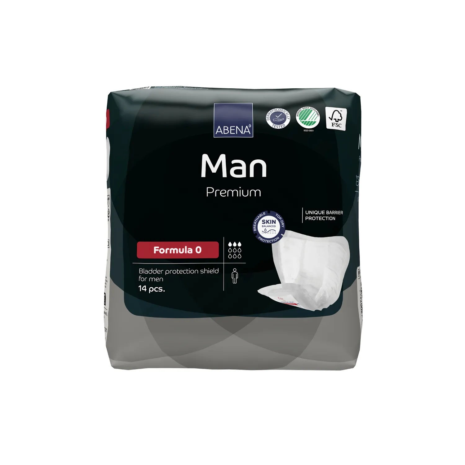 Abena Man Premium Protetores Fórmula 0 14uds é a solução ideal para a incontinência urinária muito leve em homens. Oferecem máxima discrição e segurança na vida diária.