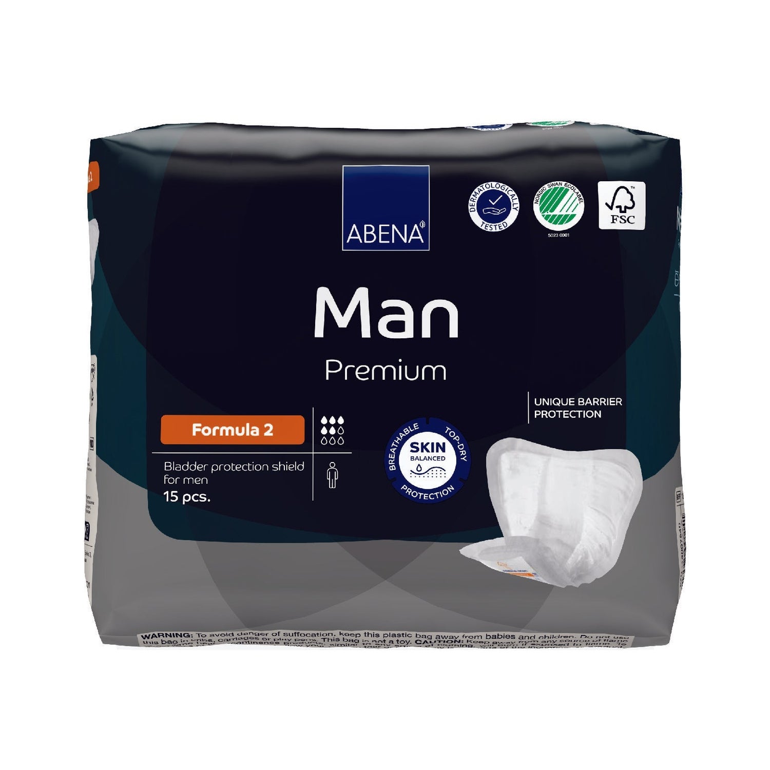 Abena Man Premium Protetores Fórmula 2 15uds é a solução desenvolvida pela ABENA para a incontinência urinária leve a moderada em homens. Oferecem máxima discrição e conforto em cada uso.