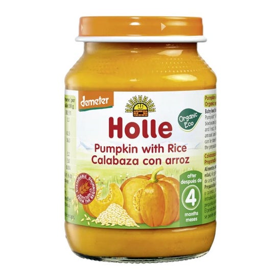Abóbora Holle Potito com Arroz O puré de abóbora com arroz biológico da Holle é uma excelente escolha para acompanhar a transição do bebé para alimentos mais sólidos. Este produto, adequado para bebés a partir dos 4 meses, é fácil de preparar e oferece uma opção saudável e nutritiva em poucos minutos. A sua formulação foi cuidadosamente pensada para garantir uma alimentação equilibrada, sem: açúcares adicionados sal espessantes leveduras ovo lactose proteína do leite glúten Estas características fazem dele uma alternativa ideal para minimizar o risco de alergias e facilitar a digestão. Com uma textura suave e cremosa, este puré combina: vitaminas A, C e D cumarinas licopeno carboidratos Isso proporciona uma experiência gustativa agradável e contribui para o bem-estar geral do bebé. Para potenciar ainda mais os seus benefícios nutricionais, é aconselhável agitar o frasco antes da utilização e, se desejado, adicionar duas colheres pequenas de óleo vegetal. Isso enriquece a refeição com ácidos gordos essenciais, reforçando a nutrição durante as fases iniciais de crescimento do bebé.