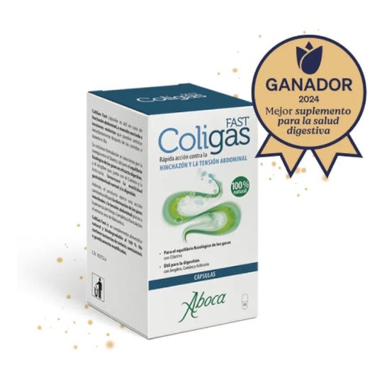O Aboca Coligas Fast 50cáps é um suplemento alimentar digestivo. Composto principalmente de extractos liofilizados de coentros e gengibre, promove a digestão e o equilíbrio natural dos gases no trânsito digestivo. Além disso, este produto também inclui funcho, cominho, chicória e extrato de marshmallow liofilizado, que ajudam a facilitar a digestão, reduzir os gases e estimular a capacidade de motilidade para o trânsito intestinal.