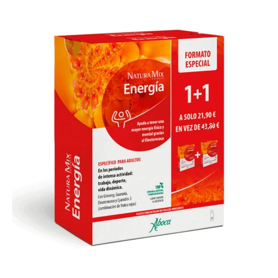 Aboca Natura Mix Advanced Energy Fluid Concentrate 2x10 unidades é um suplemento alimentar que ajuda a fornecer energia extra tanto física como mentalmente, bem como a reduzir a fadiga em períodos de maior actividade.