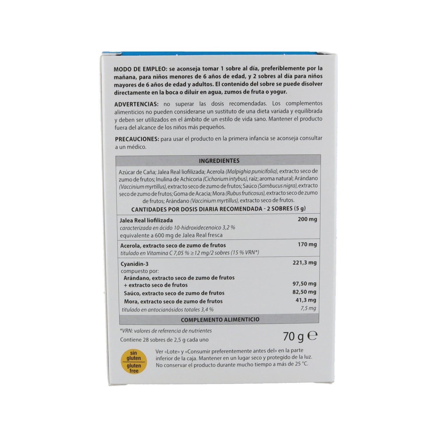 A sua fórmula 100% natural contém extrato de acerola como fonte de Vitamina C, Geleia Real liofilizada e Cianidina-3, que possui propriedades antioxidantes e ajuda a reforçar as defesas do organismo.