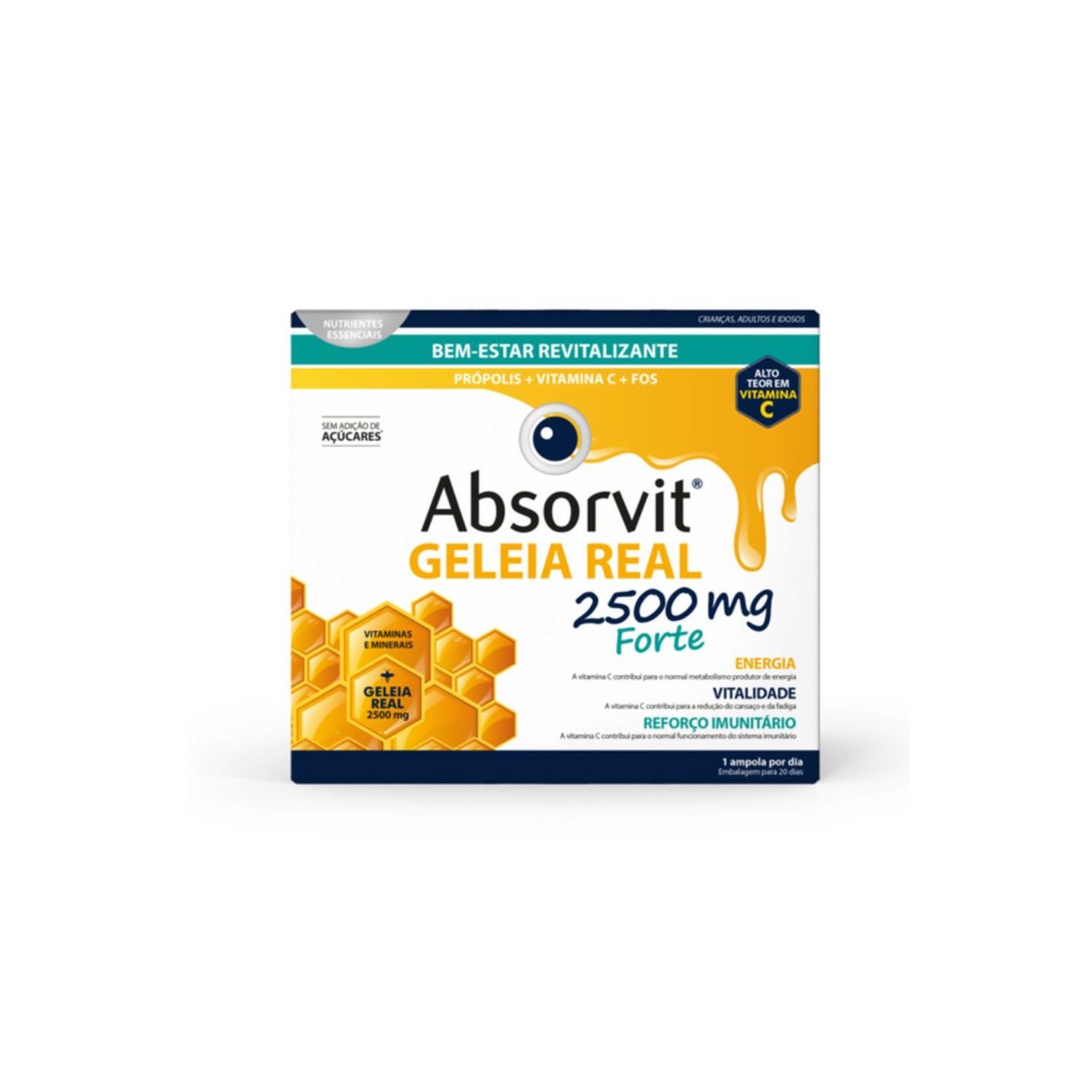 Absorvit Geleia Real 2500mg Forte 20x15ml é um suplemento inovador da linha Absorvit®, projetado para promover a vitalidade e o bem-estar geral.