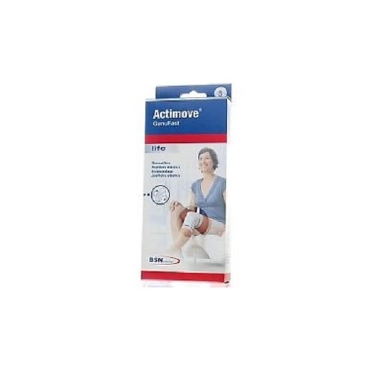 Joelho elástico Actimove GenuFast, tamanho M, 1 unidade. Oferece suporte e compressão para o joelho, fabricado com materiais elásticos de alta qualidade para se ajustar confortavelmente.
