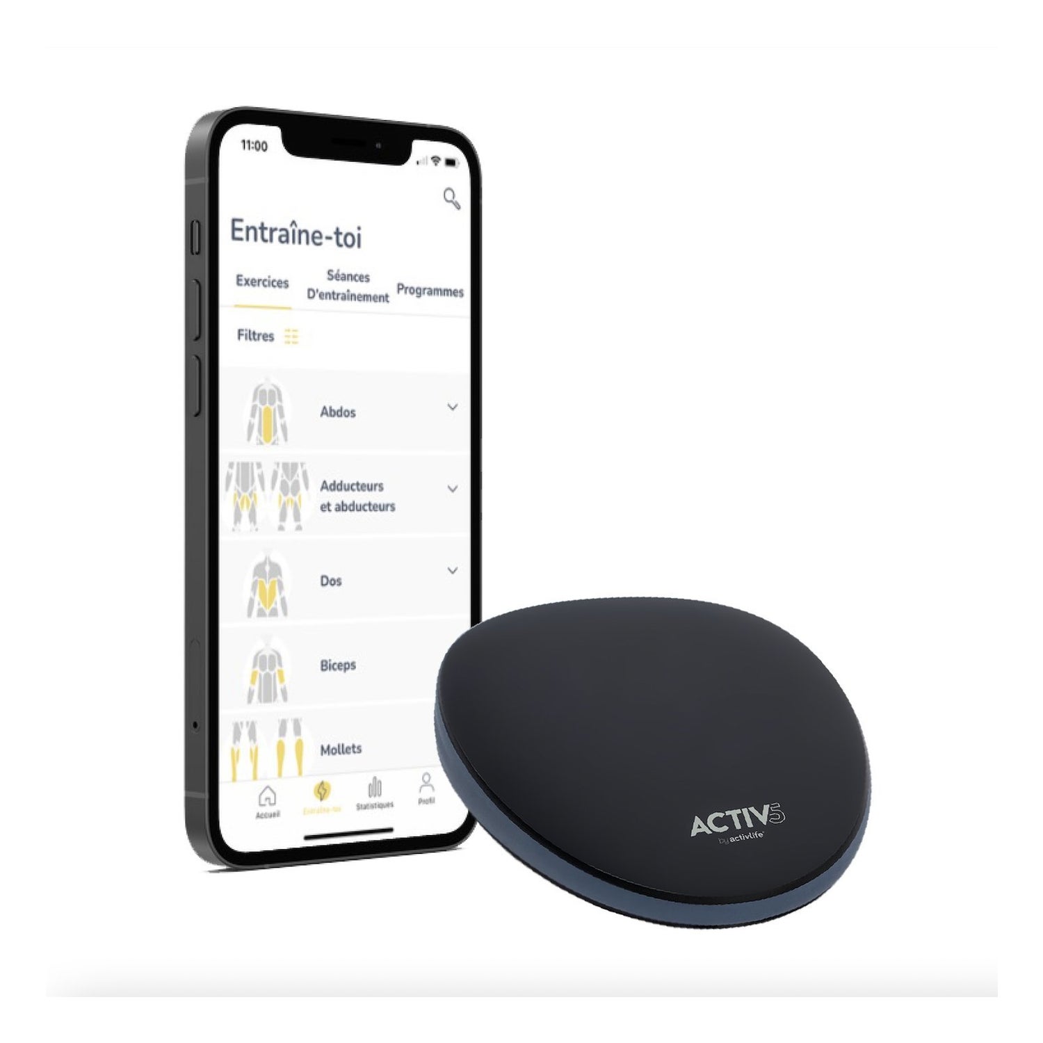 Activlife Activ5 é um dispositivo conectado em forma de seixo com sensores de pressão para detetar e melhorar a tua força durante os exercícios de tonificação muscular. Com 3 sensores de pressão e baseado no conceito de isometria, o Activ5 tonifica os músculos profundos respeitando as articulações, desenvolve a resistência muscular e aumenta a densidade óssea. Este rolo conectado é utilizado juntamente com a aplicação Activ5 (disponível gratuitamente na App Store ou Google Play Store). Poderás calcular a tua força, participar em desafios e aceder a mais de 100 exercícios e programas completos de musculação, todos adaptados ao teu nível. Adequado para qualquer pessoa que deseje realizar exercícios simples que não danifiquem as articulações e que se foquem em grupos musculares específicos (peitorais, ombros, abdominais, glúteos). Pode ser utilizado em qualquer lugar e a qualquer momento.