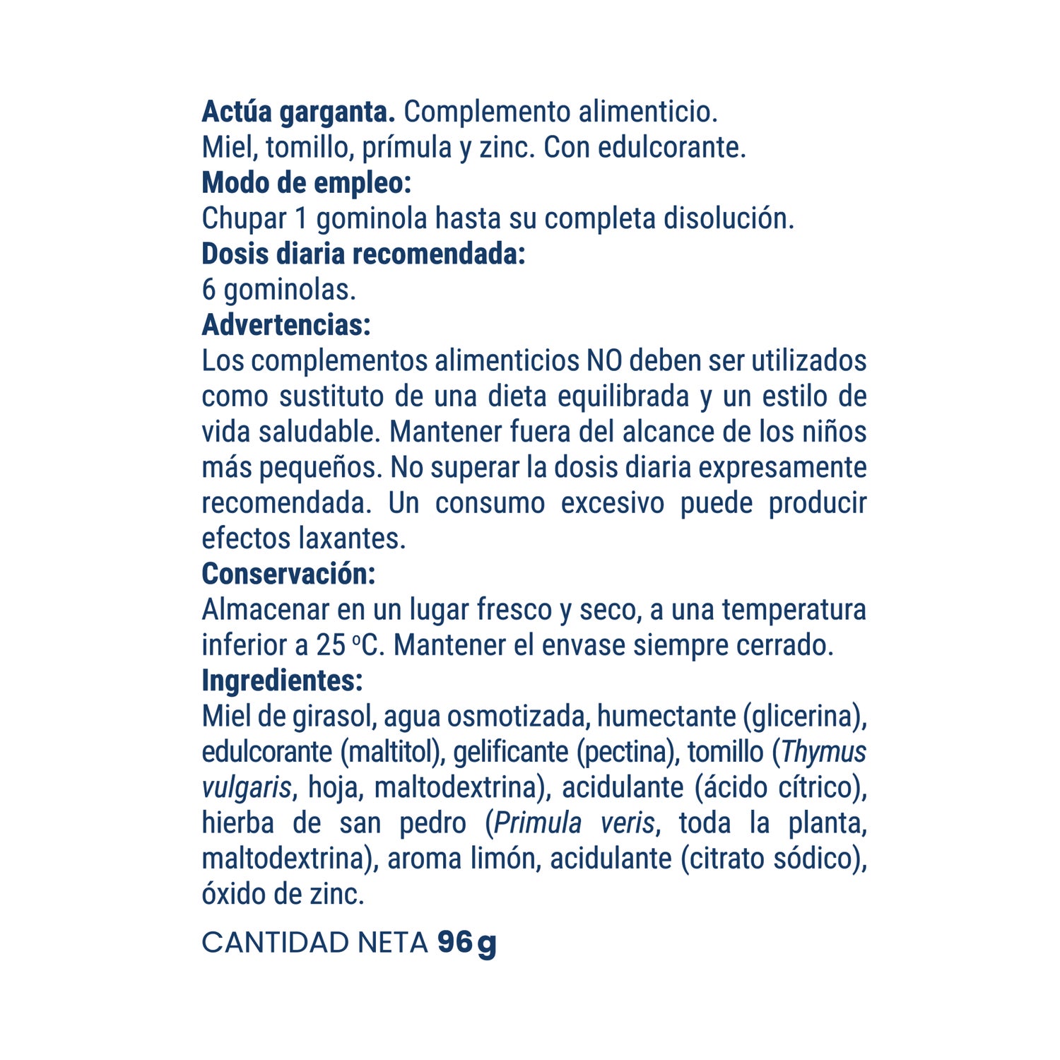 Suplemento alimentar à base de mel, tomilho, primula e zinco.
