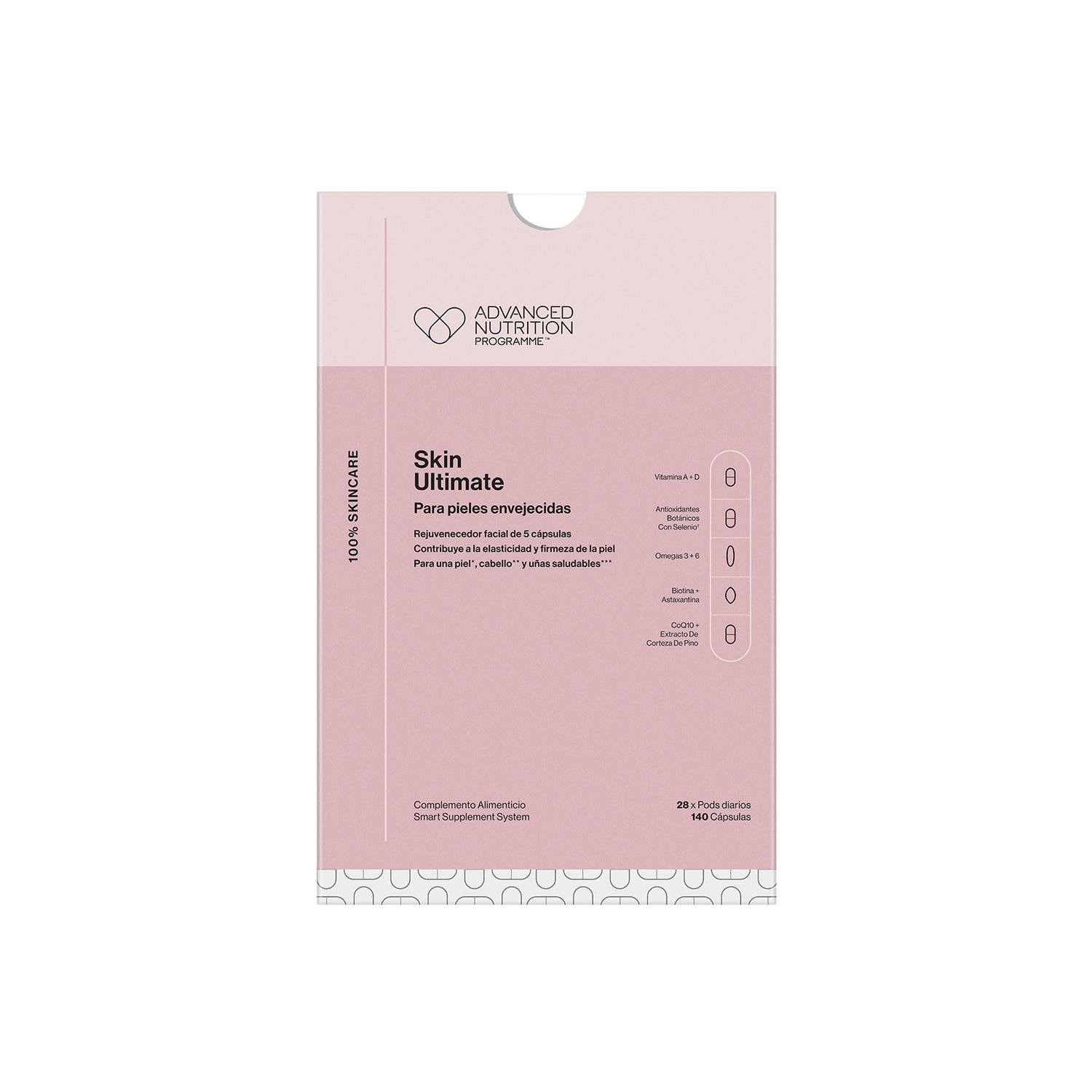 Advanced Nutrition Programme Skin Ultimate 28 Dias 140caps é um suplemento alimentar multivitamínico que contribui para a elasticidade e firmeza da pele em peles envelhecidas.