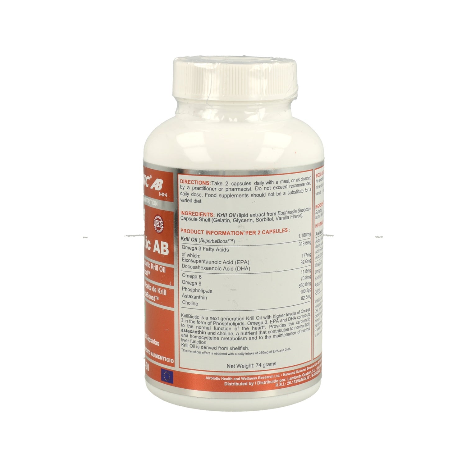 Airbiotic Krillbiotic AB 590 Mg Ecoharvesting 90 Capsules é um suplemento à base de óleo de krill, um pequeno crustáceo tipo camarão que habita as águas da Antárctida e constitui uma grande parte da população aquática.