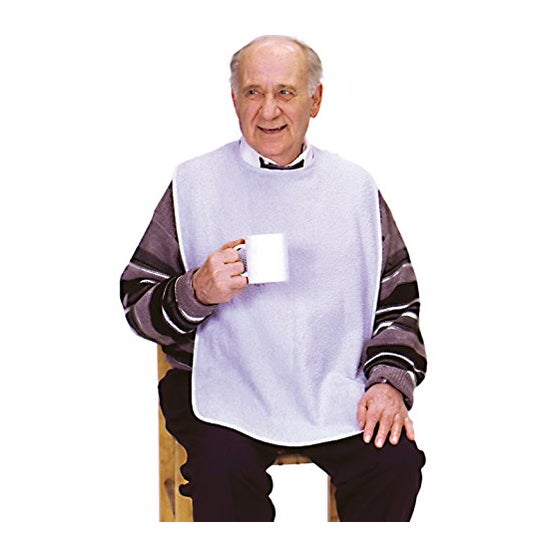 Ajudas Dinâmicas Babador de Rizo é uma solução ideal para proteger durante a alimentação pessoas com mobilidade reduzida. Este babador, especialmente útil para idosos ou pacientes com dificuldades motoras, mantém a roupa limpa e seca, favorecendo a higiene e o bem-estar diário.