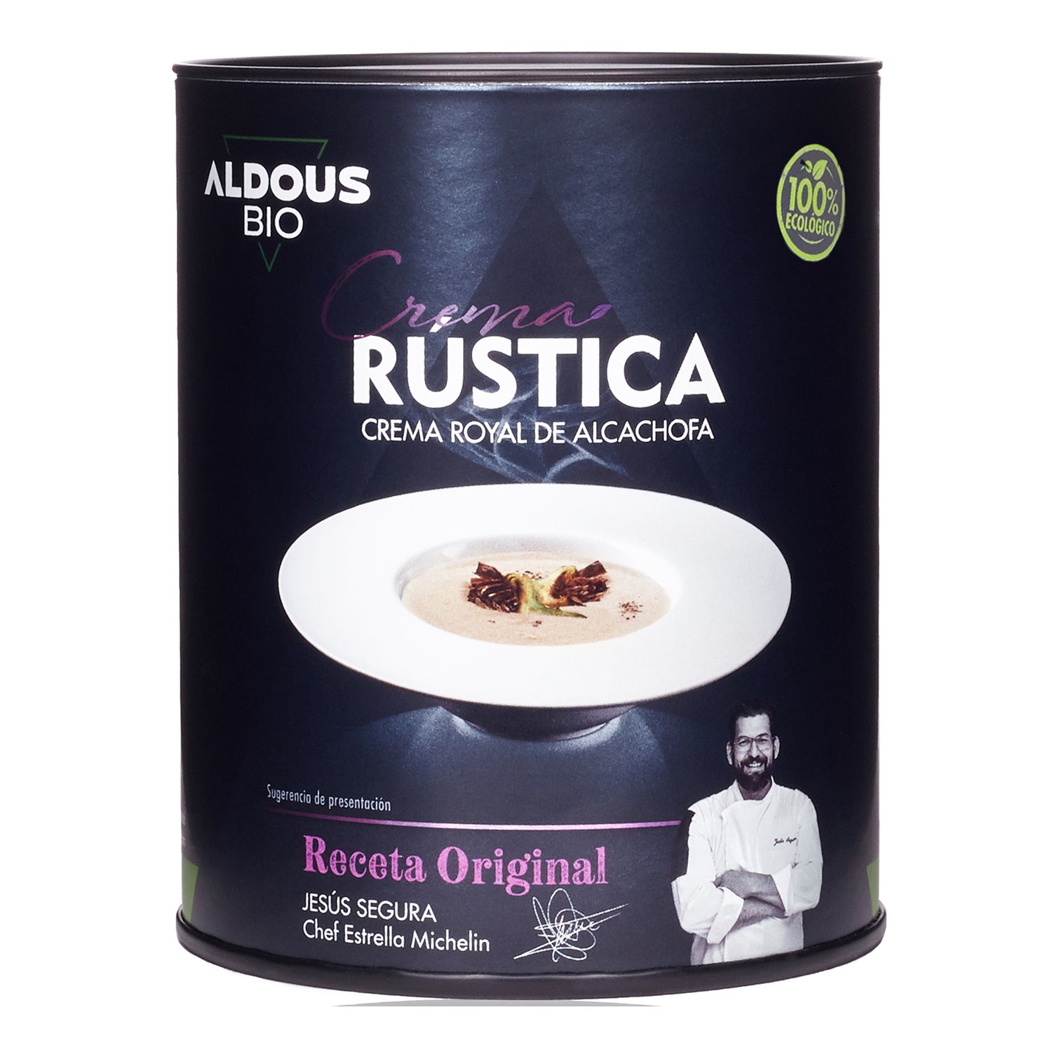 Creme de alcachofra de qualidade gourmet, feito com ingredientes 100% orgânicos e de acordo com a receita original do conhecido Chef Estrela Michelin, Jesús Segura. Contém, além de alcachofra, abóbora, tomate, alho francês ou azeite extra-virgem, entre outros, que favorecem uma dieta saudável.