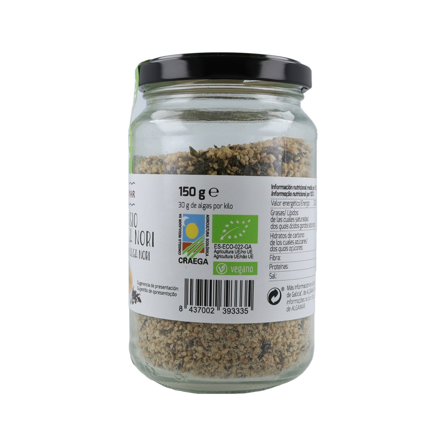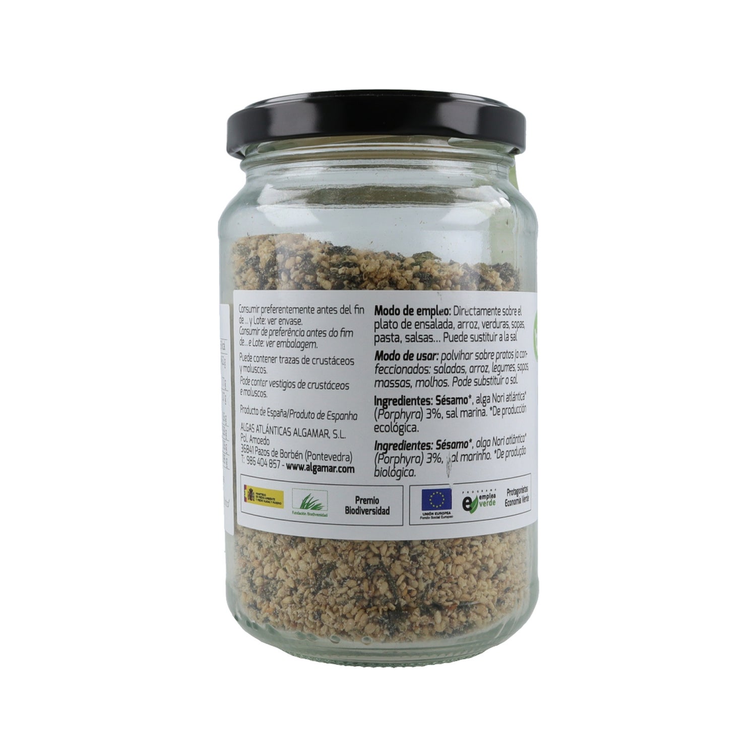 Condimento japonês apreciado na cozinha macrobiótica. Elaborado a partir de sésamo triturado misturado com alga marinha e sal.