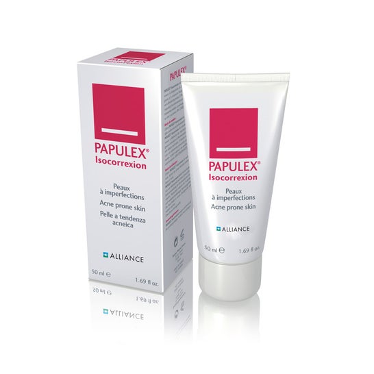 Alliance Papulex Isocorrexion 50ml é um hidratante intenso concebido para as peles com imperfeições. Graças à sua fórmula à base de niacinamida, AAB ativo, PCA de zinco, phytosebum e manteiga de karité, ajuda a reduzir o aparecimento de imperfeições, aliviando a sensação de repuxamento. Indicado para peles com imperfeições.