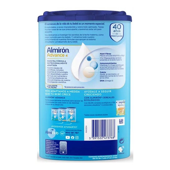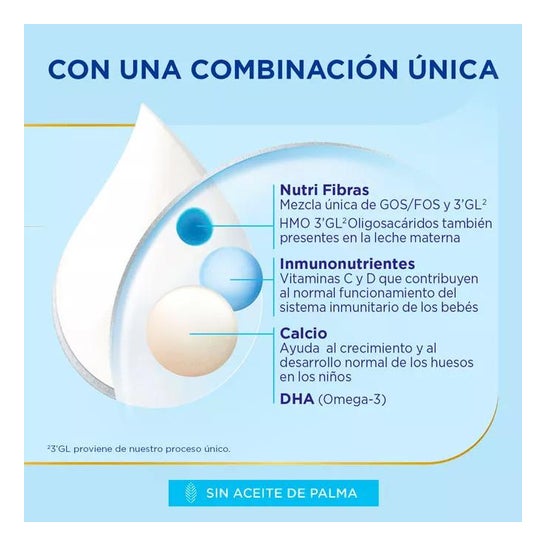 Para além disso, a sua composição não contém óleo de palma e contém NutriFibras GOS/FOS e HMO 3'GL, um oligossacárido também presente no leite materno, proveniente de um processo único da Almirón.
