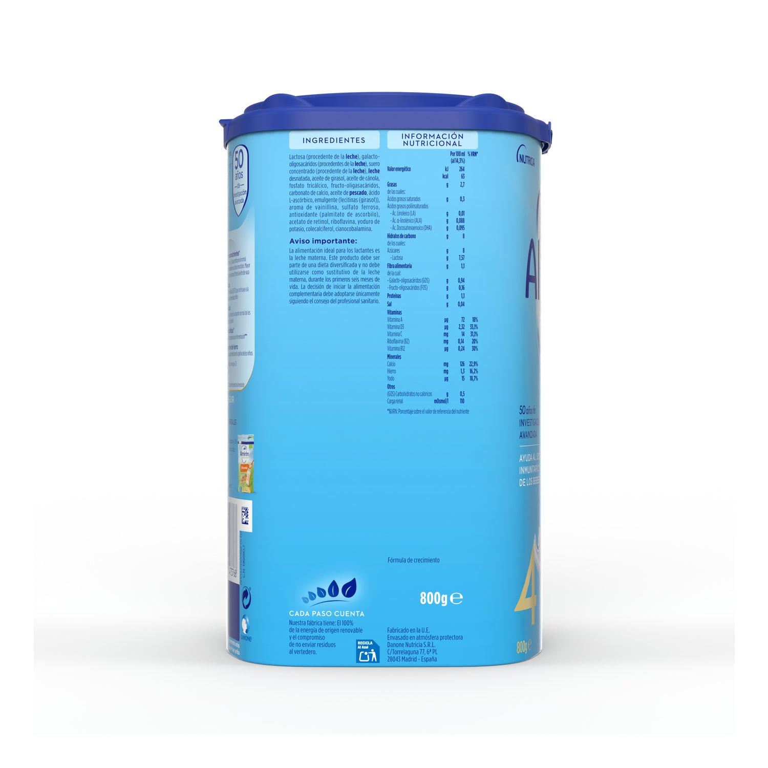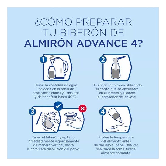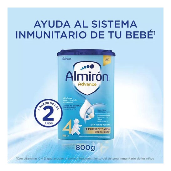Almirón Advance 4 Leche de Crecimiento 800g é um leite de transição em pó que contém uma combinação de Ómega 6, Ómega 3 e oligossacáridos presentes no leite humano.