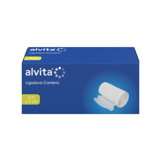 Alvita Ligadura Cambric 5m x 7cm é um curativo feito de algodão 100% que facilita o cuidado de pequenas feridas.