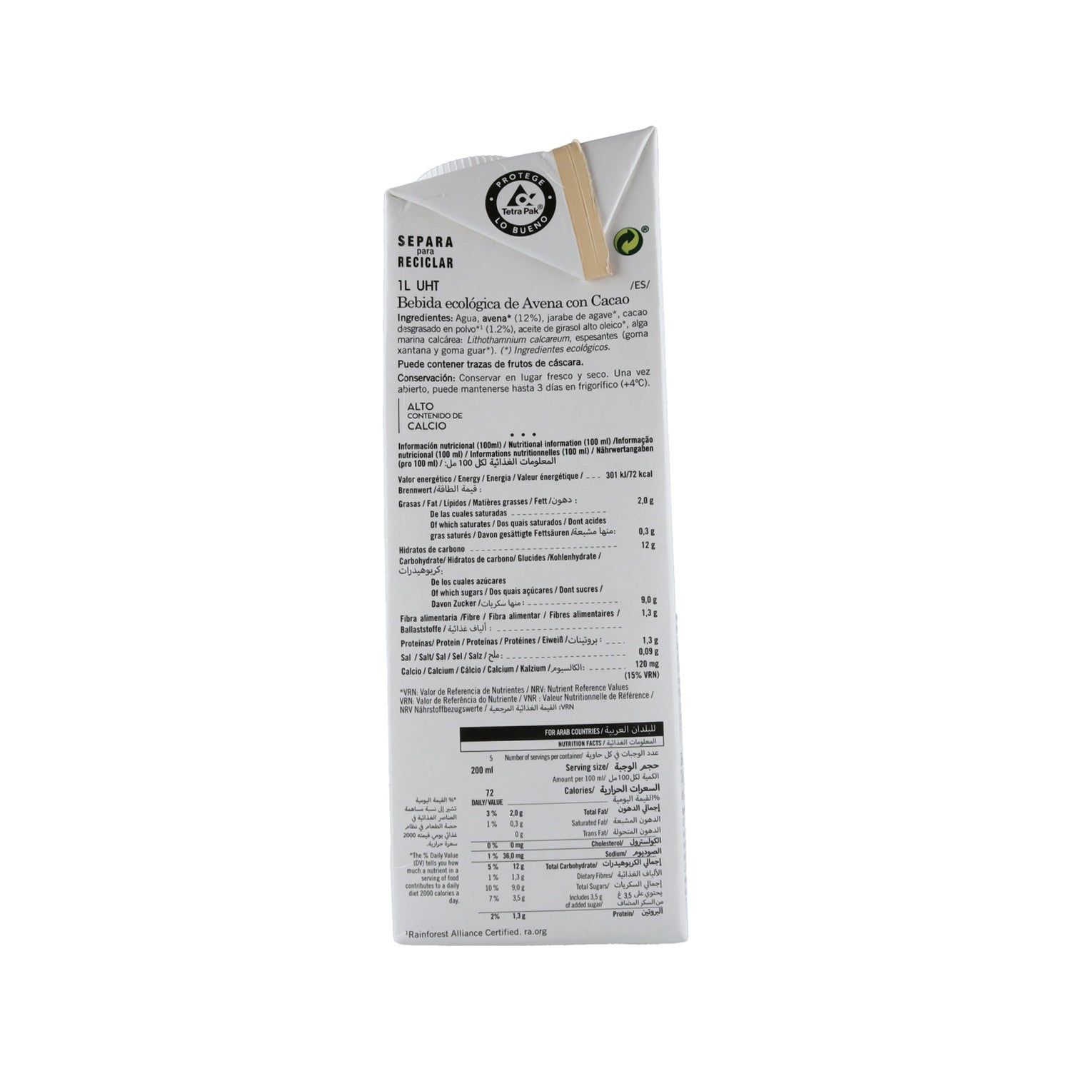 Bebida ecológica elaborada à base de aveia 100% orgânica com sabor a cacau e sem açúcares. Além disso, conta com um baixo teor de gordura que favorece a manutenção do peso corporal.