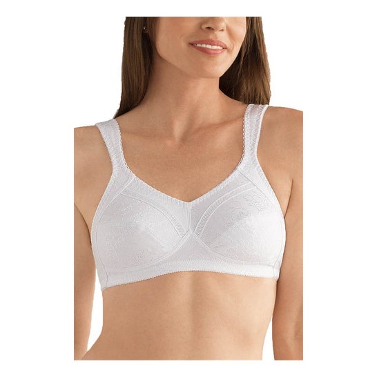 Soutien-gorge sem aros com fecho traseiro em tecido delicado e estampado floral. Os seus bolsos interiores invisíveis de microfibra incluem um enchimento de fibra para ajudar a fixar o peito ou as próteses mamárias de forma segura na sua posição. As alças largas e acolchoadas favorecem o suporte e o conforto nos seios, melhorando o movimento natural do dia a dia. Cor: Nougat. Tamanho: 95D.