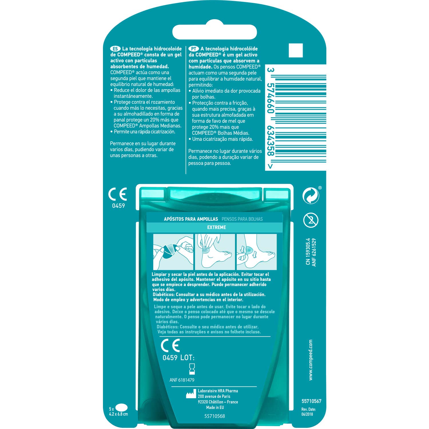 Compeed® Bolhas Extreme 6uds são curativos hidrocoloides para bolhas muito dolorosas. Seu design se ajusta perfeitamente e, graças à sua tecnologia hidrocoloide, absorve o excesso de fluido.