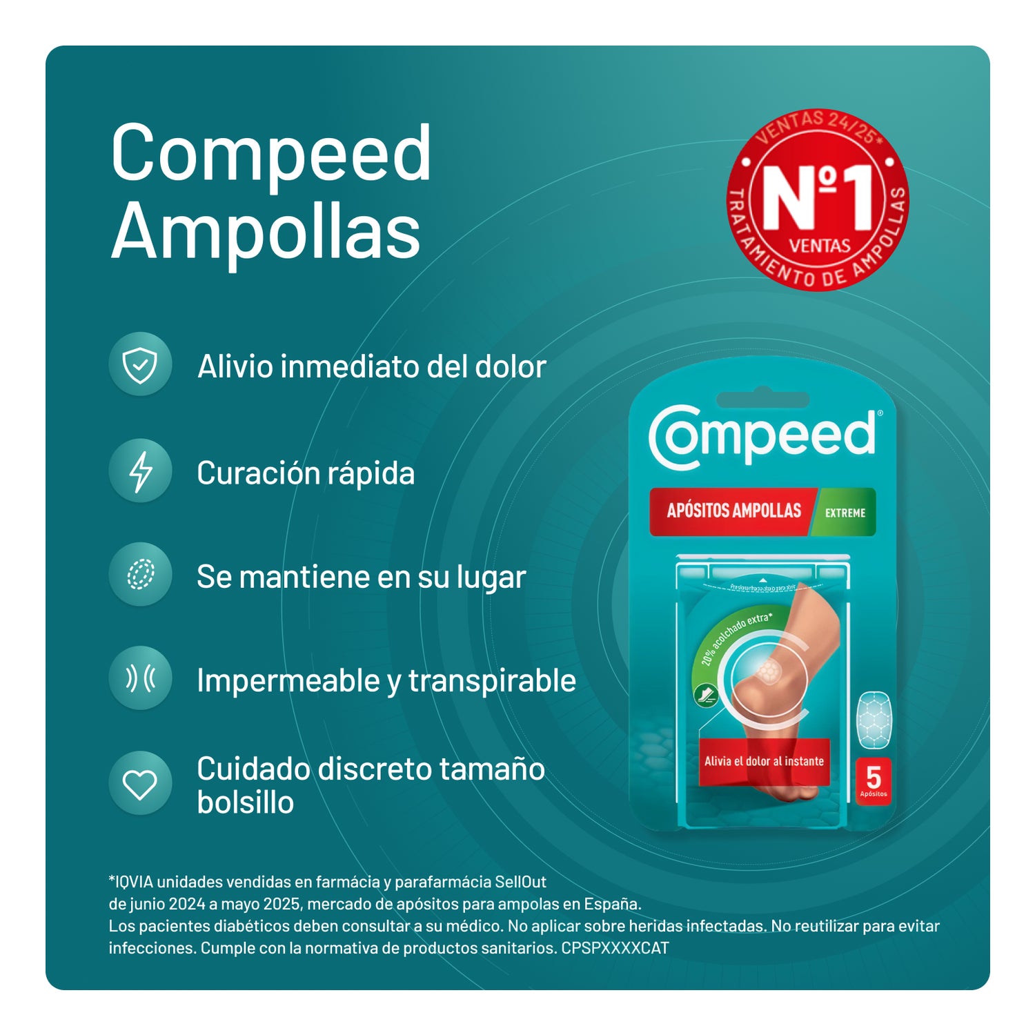 - Durabilidade: pode permanecer no lugar durante dias para proteger a bolha corretamente.