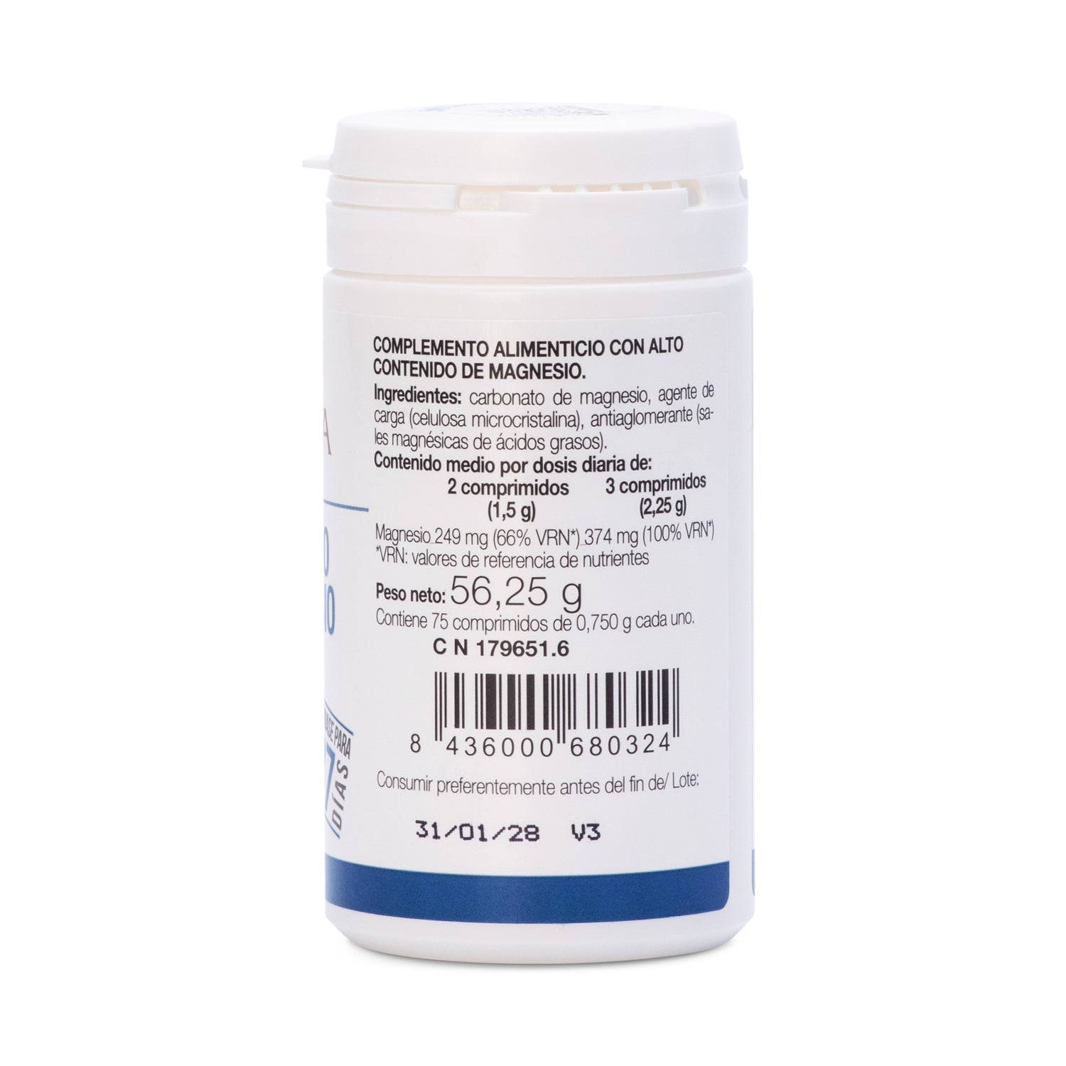 LaJusticia magnesium carbonate 75comp é um suplemento alimentar que fornece 80% da RDA (dose diária recomendada) de magnésio. Este produto é ideal para pessoas que, por várias razões, necessitam de um fornecimento adicional de magnésio: gravidez, pessoas idosas, amamentação, etc.