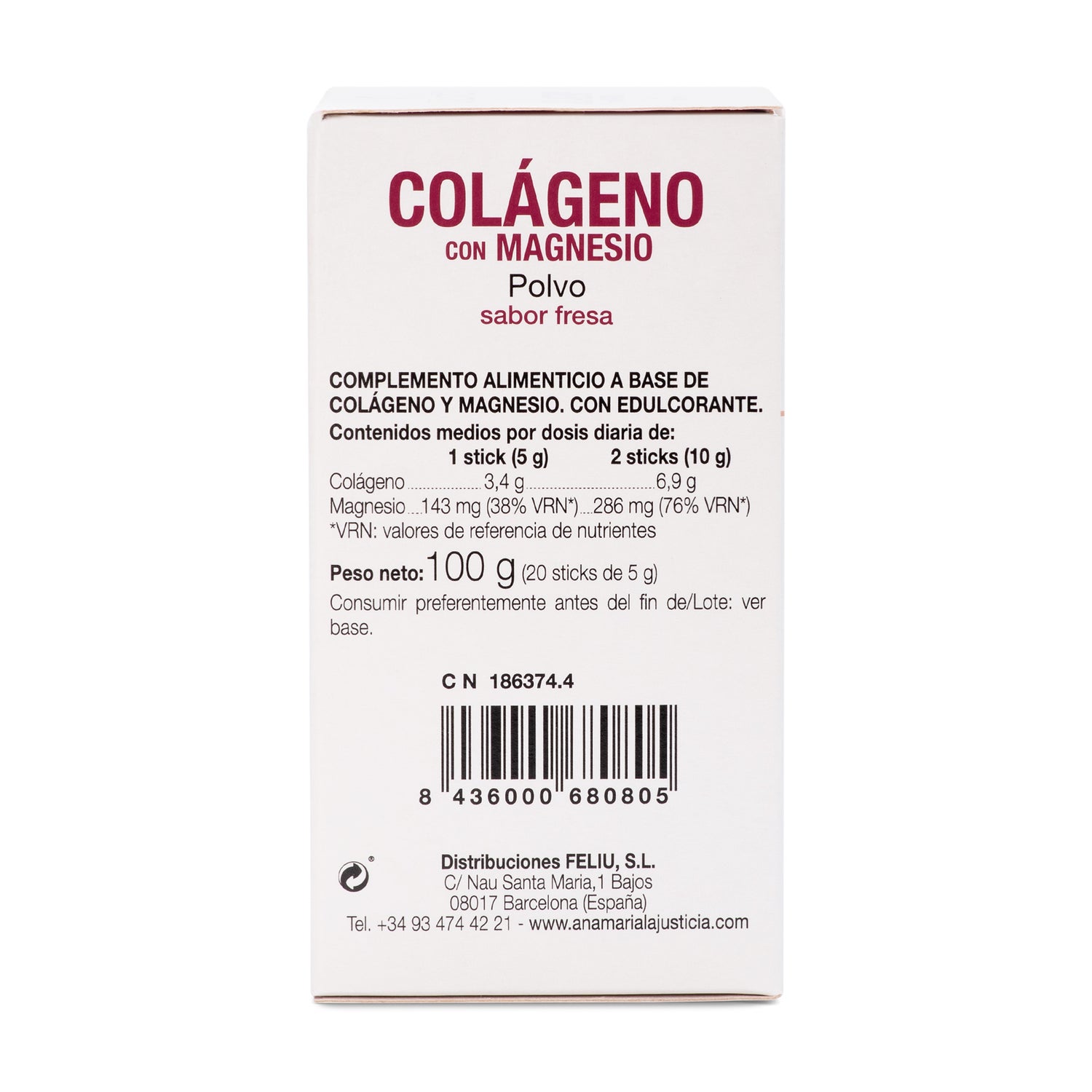 Ana Maria Lajusticia Collagen Magnesium Strawberry 20 Sticks é um suplemento alimentar em formato de pau com sabor de morango à base de magnésio e colagénio que ajuda a manter as articulações do nosso corpo em boa forma, bem como a melhorar a saúde dos ossos, músculos e pele .