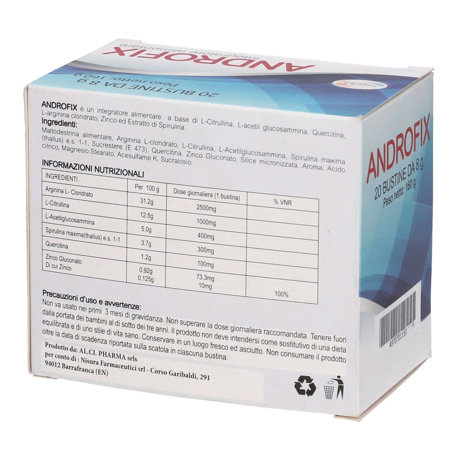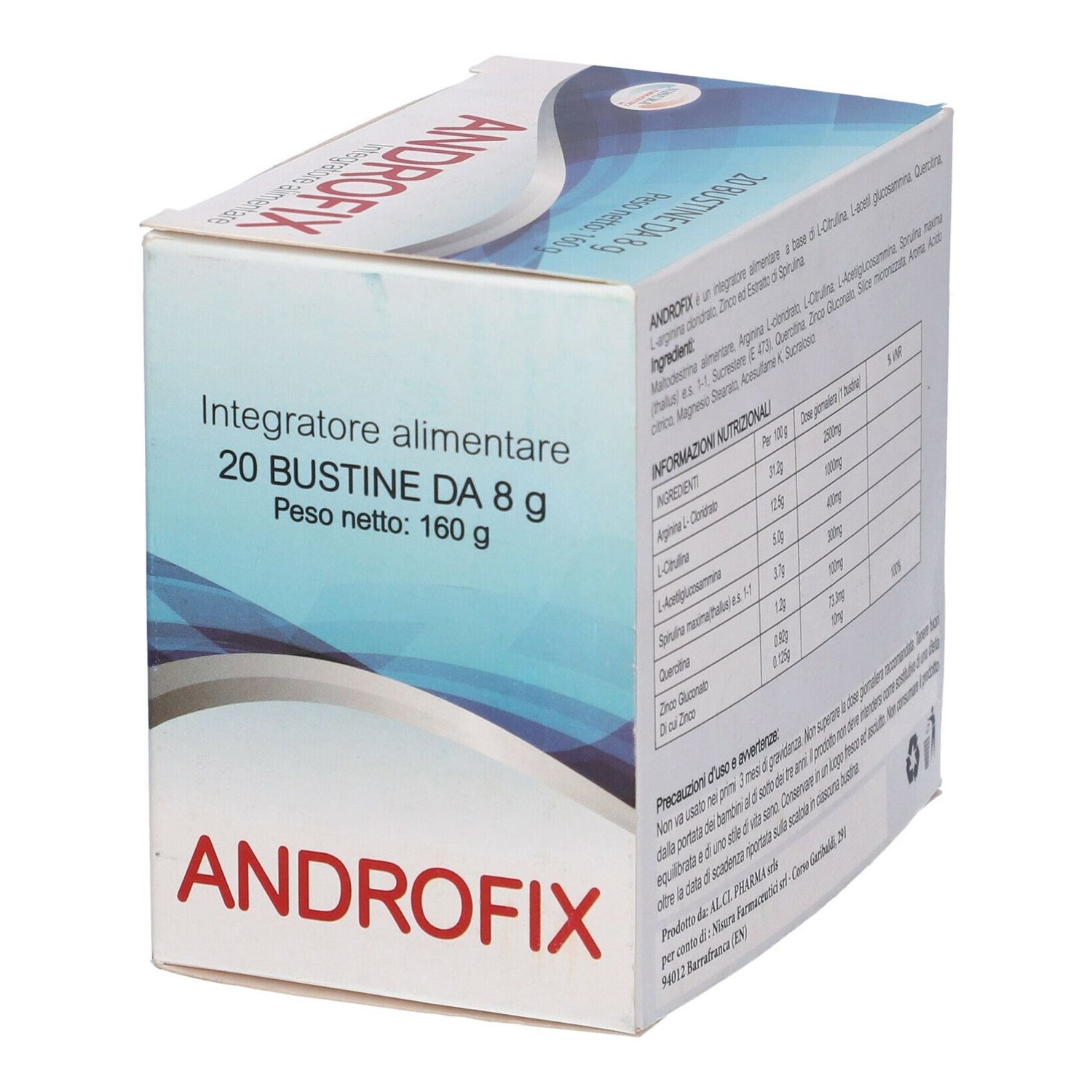 Androfix 20Sacos é um suplemento alimentar que atua como coadjuvante em situações de estresse psicofísico e que proporciona um efeito tônico e trófico no estresse nervoso e físico.