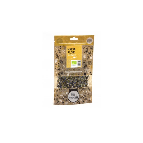 Andunatura Malva flor Bolsa Kraft ECO 15g atua contra a prisão de ventre e os distúrbios gastrointestinais moderados. Eficaz contra as irritações buco-faríngeas e contra a tosse seca.