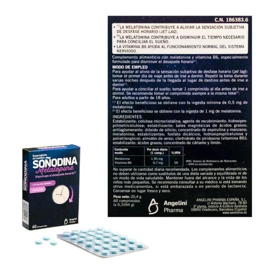 Um suplemento alimentar à base de melatonina 1,95mg e vitamina B6. Ajuda a reduzir o tempo necessário para adormecer e acalmar a sensação de jet lag. Contribui para o bom funcionamento do sistema nervoso, ao mesmo tempo que promove um despertar energético. Promove o sono repousante e evita despertares nocturnos desnecessários. Adequado para adultos e crianças a partir dos 12 anos de idade.