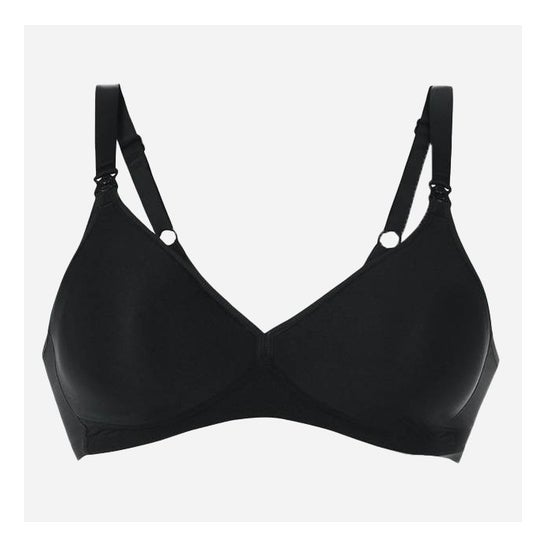 Este soutien de enfermagem preto é feito de um tecido super fino sem costura, e graças ao facto de não ter arame inferior, permite que a chávena seja muito confortável. Na parte de trás há 4 ganchos ajustáveis, e o clipe de enfermagem está localizado na parte superior frontal, sendo muito fácil de abrir, graças ao seu formato triangular.