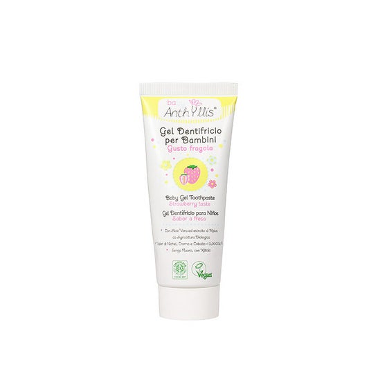 Pasta de dentes para crianças da Anthyllis, formulada com Aloe vera e Malva. Gel dentífrico para crianças, adequado a partir dos primeiros dentes, com sabor a morango. A composição de baixo nível de abrasão garante segurança para a limpeza dos dentes de leite. Ajuda a prevenir a formação de cáries e garante a higiene oral. Os ingredientes têm origem ecológica.