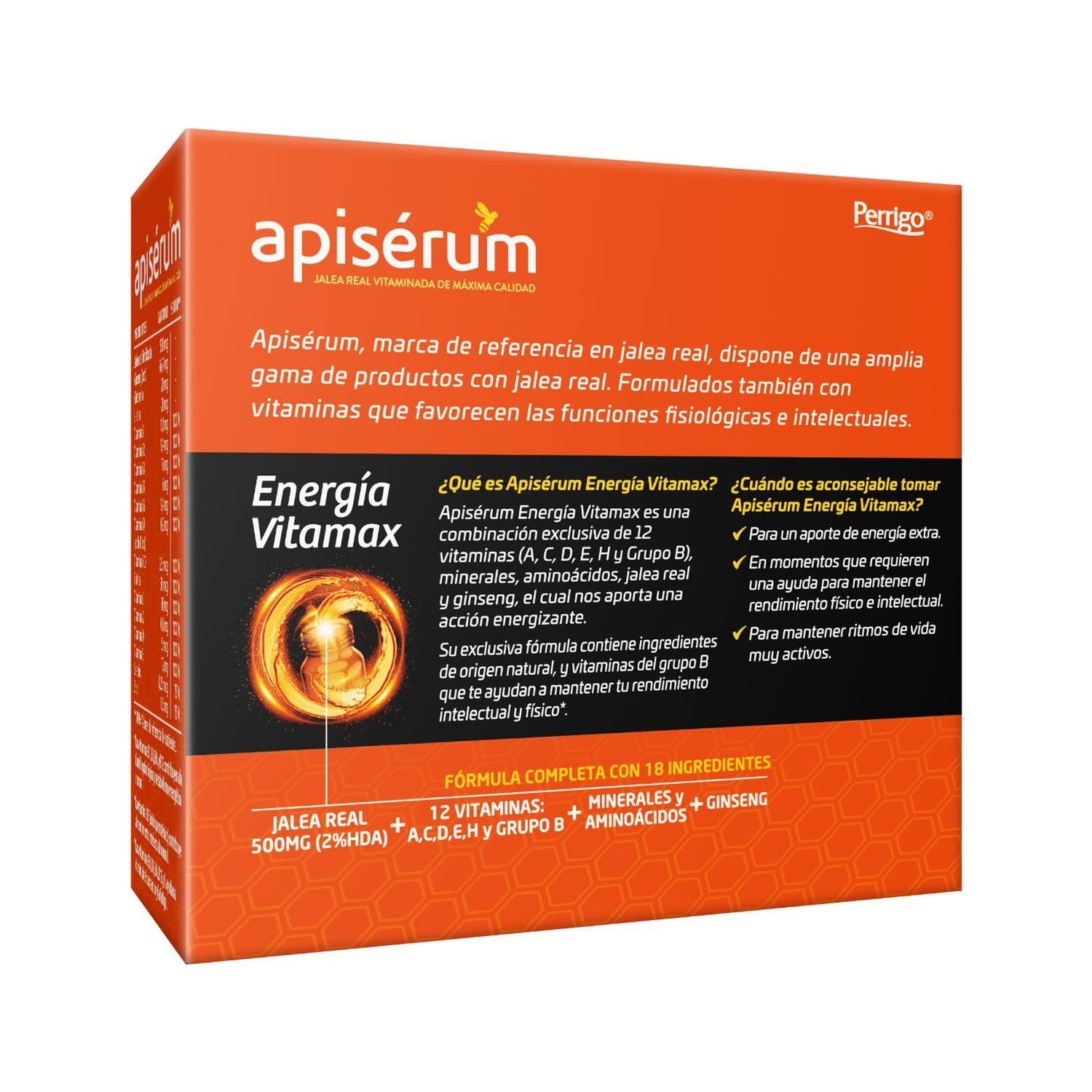 Apisérum Energy Vitamax 18vials é um suplemento alimentar que proporciona uma energia intelectual e física suplementar