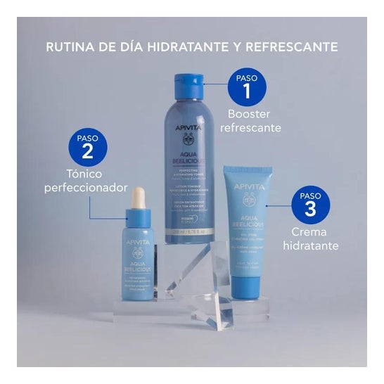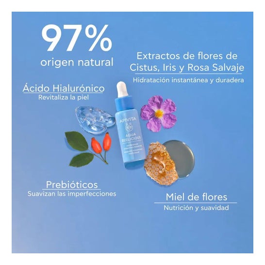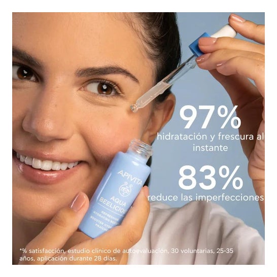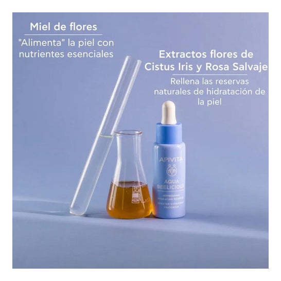 Apivita Aqua Beelicious Moisturising and Refreshing Booster 30ml é um gel aquoso potenciador formulado com extractos de flores de esteva, íris, rosa selvagem, mel, aloé vera e ácido hialurónico.
