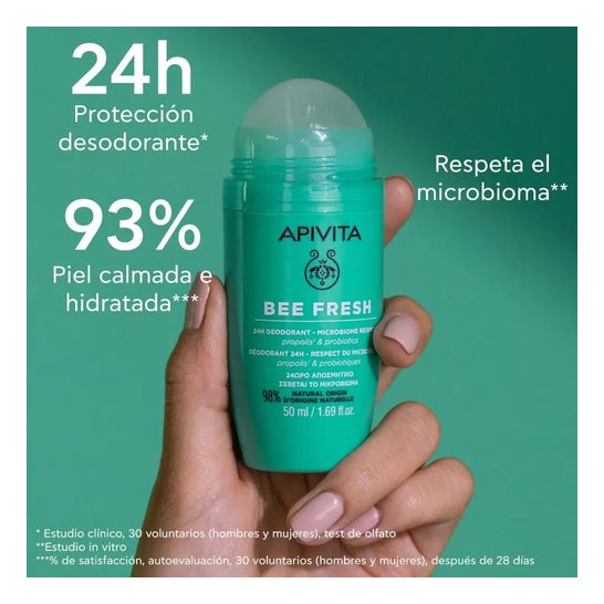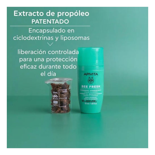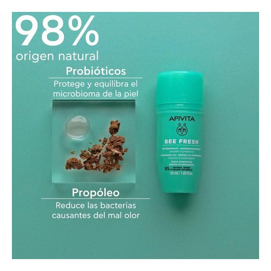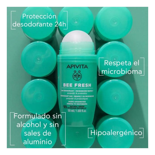 Desodorizante Roll-on formulado com um complexo de própolis de mel. Ajuda a controlar o excesso de transpiração durante 24 horas e protege a pele sensível das axilas da humidade. Ajuda a acalmar e acalmar possíveis irritações de pele. Reforçados com probióticos e infusão de hamamélis, que respeitam o processo de transpiração fisiológica e reforçam a barreira cutânea. Adequado para adultos e adolescentes a partir dos 12 anos de idade.