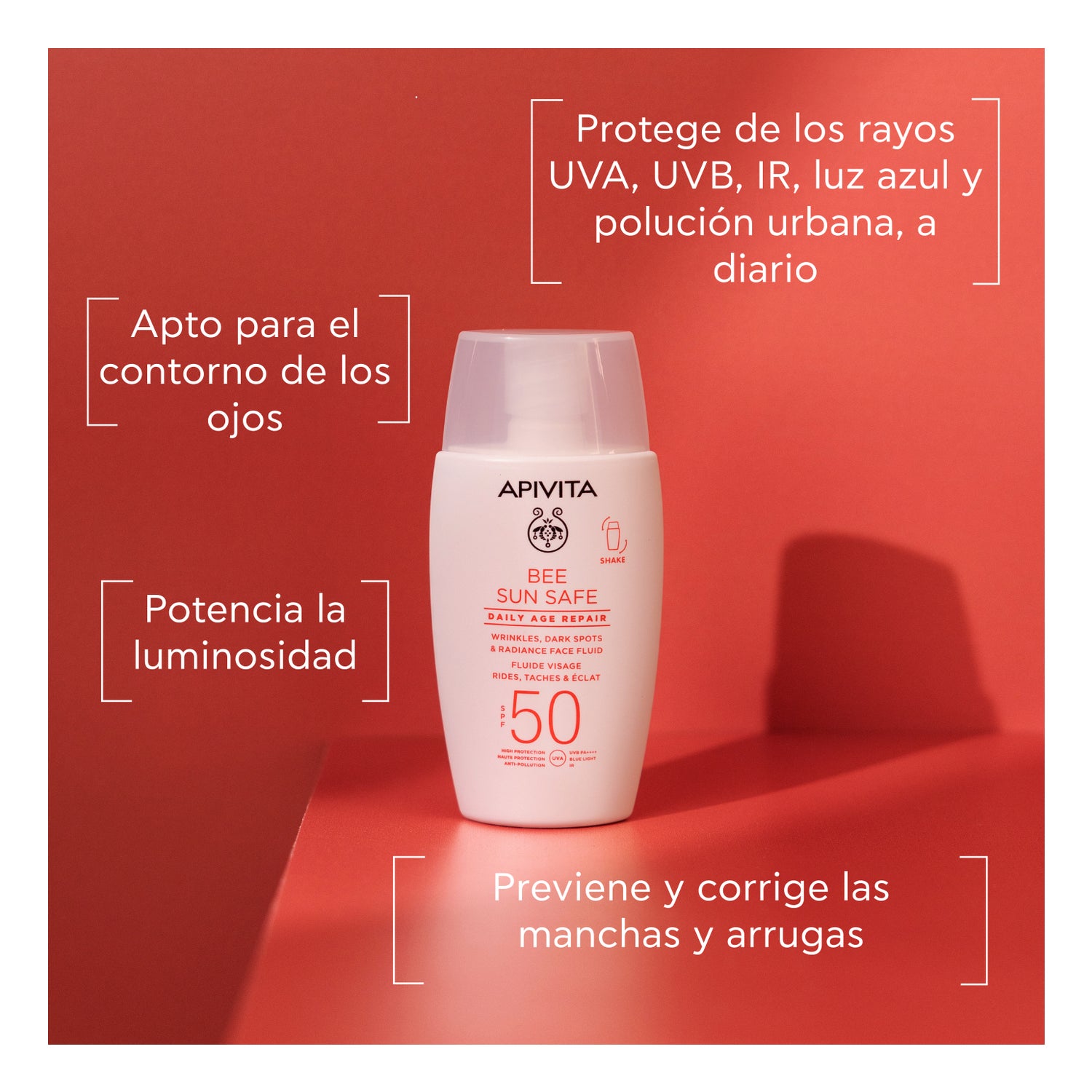 Apivita Bee Sun Safe Daily Age Repair Spf50 50ml é um fluido facial diário projetado para oferecer proteção solar avançada e um cuidado antienvelhecimento global.