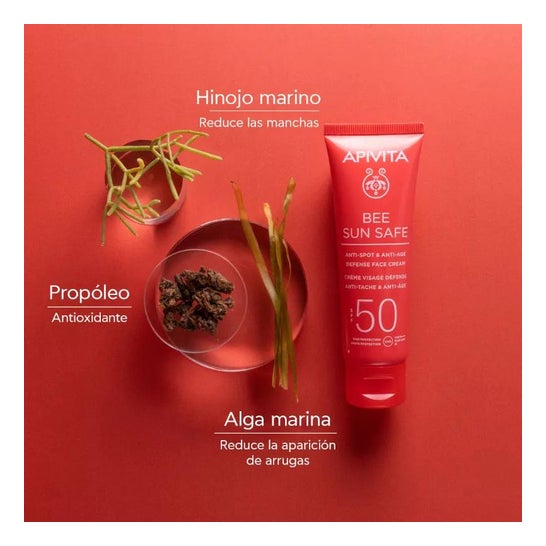 Creme facial anti-manchas com proteção solar SPF50, que contribui para um tom de pele uniforme. A sua fórmula com filtros fotoestáveis naturais e orgânicos ajuda a proteger a pele dos raios solares UVA/UVB.