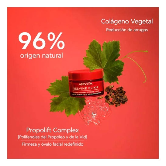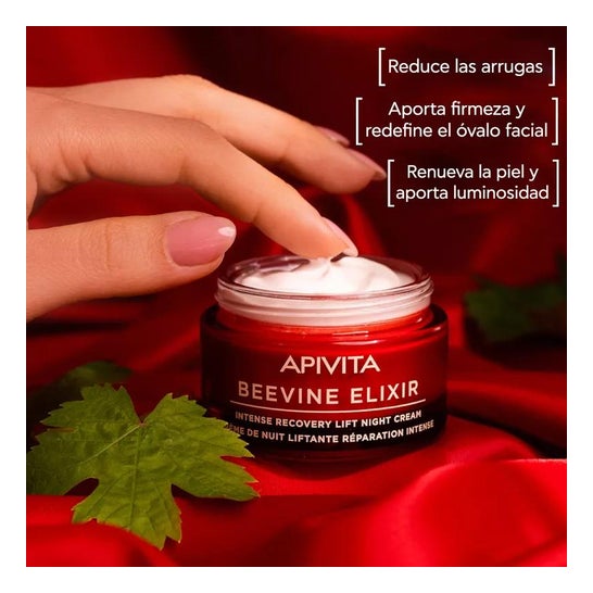 Apivita Wine Elixir Night Repair Cream with Lifting Effect 50ml é um creme que proporciona uma hidratação intensa durante a noite e promove um rejuvenescimento da pele graças ao seu conteúdo em polifenóis.