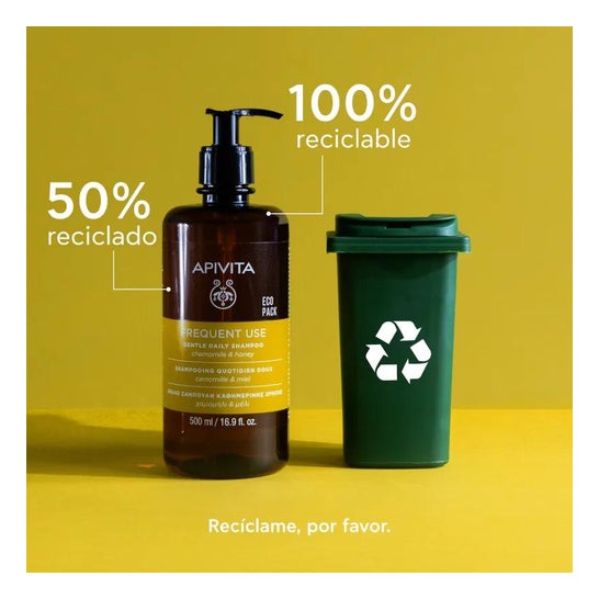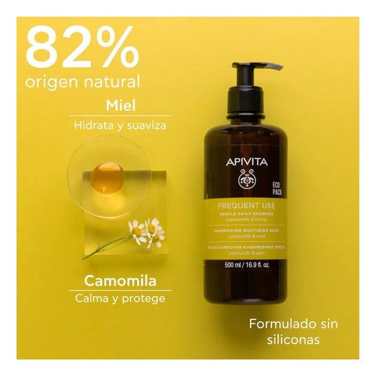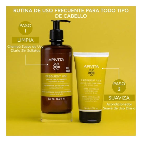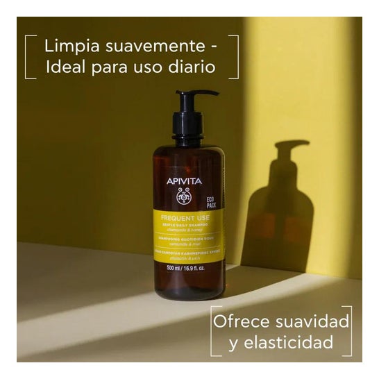 Apivita Frequent Use Shampoo 500ml é um champô de uso diário formulado com mel e camomila que proporciona hidratação enquanto limpa suavemente o couro cabeludo.