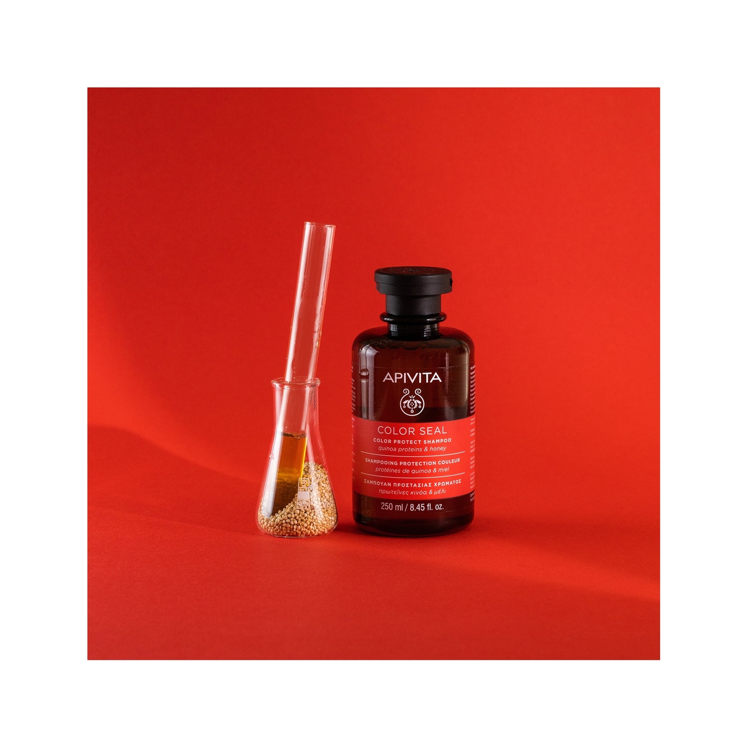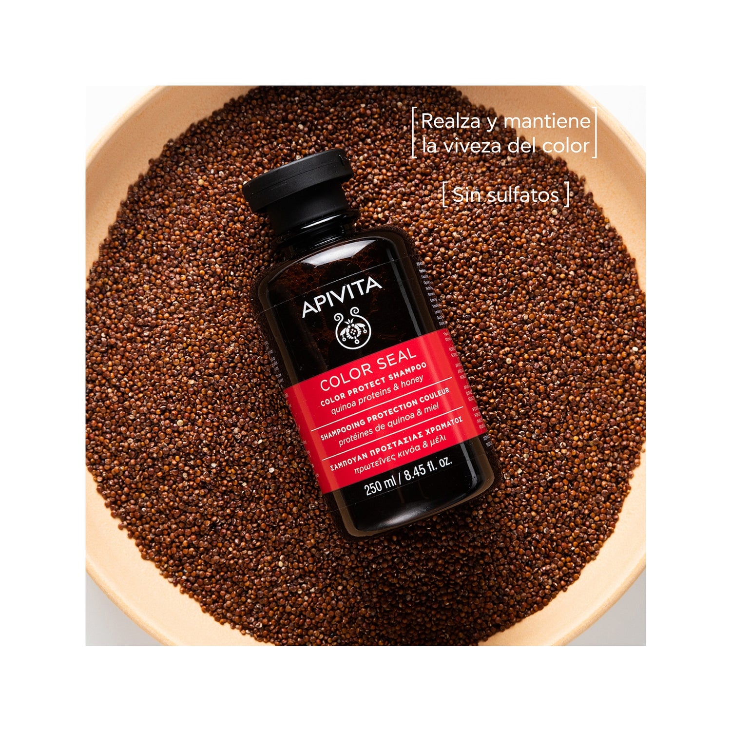 Champô que limpa e realça o brilho e a força da cor. Adequado para cabelos pintados ou em destaque. Ajuda a manter a cor e a protegê-la da degradação e da radiação UV. Também a hidrata e protege contra agressões externas diárias, como poluição e ferramentas térmicas (endireitadores ou secadores de cabelo). Graças à sua fórmula enriquecida com quinoa, mel e tomilho.