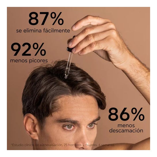 Este tratamento reduz a caspa, acalma e suaviza o couro cabeludo. Graças ao extracto natural de sementes de aipo, que é o seu principal componente, reduz o desenvolvimento do fungo Malassezia furfur e diminui a descamação desde as primeiras semanas. Além disso, tem outras propriedades benéficas para o cabelo: