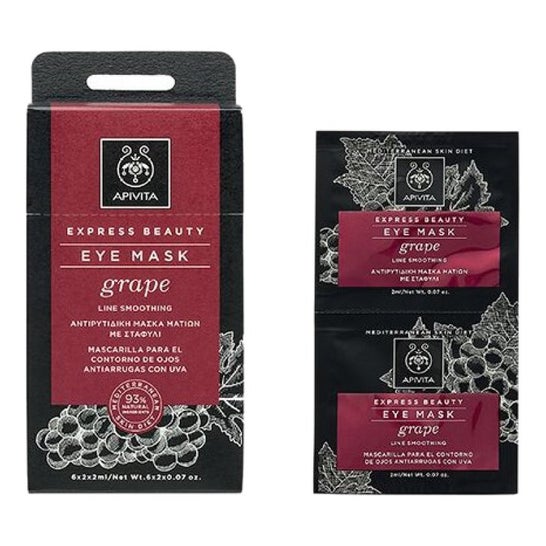 Máscara anti-envelhecimento para o contorno dos olhos. Reduz as rugas e os pés-de-galinha. Elimina os papos. Hidrata e nutre em profundidade a pele. Acalma a zona sensível do contorno dos olhos. Com ação antioxidante que retarda o envelhecimento celular. Formulado com uva e chocho, cera de abelha, azeite, manteiga de karité e óleo de arroz. O óleo essencial de mirra revitaliza o contorno dos olhos. Recomendado para todos os tipos de pele. Sem silicones, parabenos e óleos minerais. Testado oftalmologicamente.