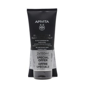 Apivita Gel Limpiador Rosto e Olhos Negro 2x150 ml é um pack de 2 géis limpadores negros de origem natural para uma limpeza profunda e detoxificante. Remove maquiagem e impurezas com eficácia e é adequado para o rosto e a área dos olhos.