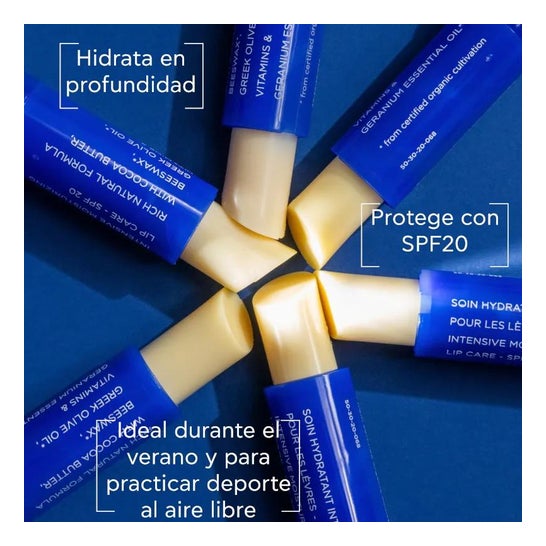Apivita Labial Manteca Cacau é um bálsamo labial que proporciona uma hidratação intensa e proteção solar spf20. A sua fórmula contém 90% de ingredientes naturais e está recomendada para depois da exposição ao sol e a prática de desportos tanto no verão como no inverno. A manteiga de cacau hidrata profundamente e mantém a elasticidade dos lábios, absorvendo-se rapidamente sem deixar resíduos gordurosos. O bisabolol acalma os lábios, enquanto o óleo de oliva, a cera de abelha, a manteiga de karité, o óleo de rícino, os ésteres de jojoba e a manteiga de cacau hidratam e suavizam. O spf 20 protege contra a radiação ultravioleta e o óleo essencial de gerânio orgânico proporciona hidratação adicional e efeito revitalizante. Apto para homeopatia e livre de parabenos, silicones e óleo mineral. A sua rica fórmula inclui ingredientes como extrato de mel, cera de abelha orgânica, óleo orgânico de oliva, abacate e óleo essencial orgânico de gerânio. Recomenda-se aplicar uma quantidade generosa nos lábios antes de usar batons ou brilhos. Adequado para homens.