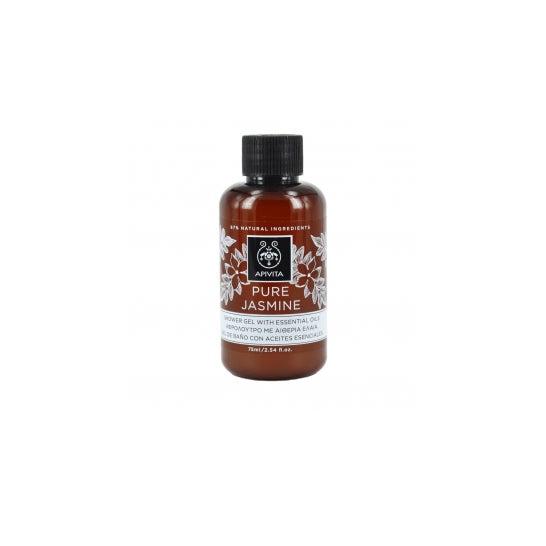 Apivita Pure Jasmine Shower Gel 75ml é um gel de duche hidratante com óleos essenciais inspirados nos princípios da aromaterapia, que limpa delicadamente a pele sem desidratação e ao mesmo tempo proporciona uma extraordinária sensação de bem-estar graças à fragrância única do jasmim.