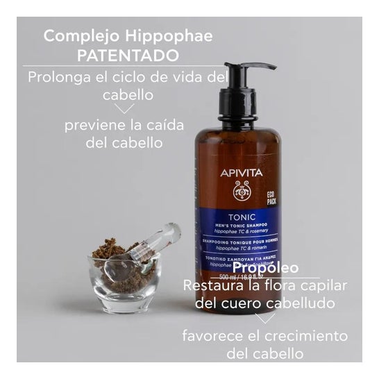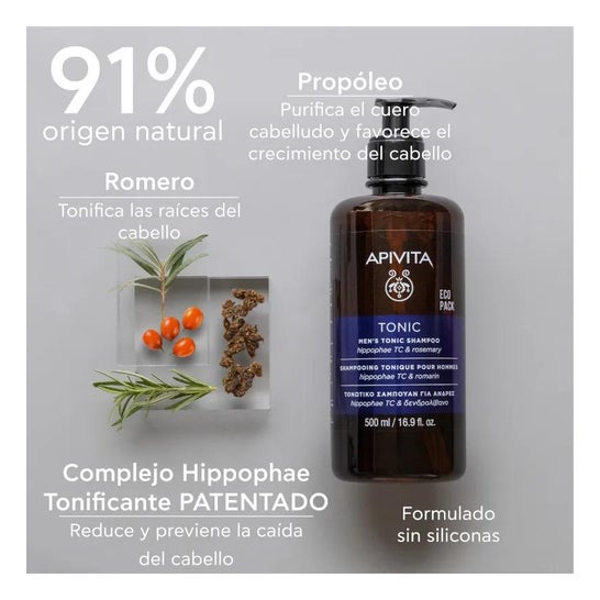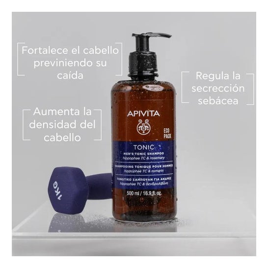 Apivita Tonic Shampoo Anti-queda de Cabelo para Homem 500ml é um champô que ajuda a fortalecer o cabelo ao prevenir a queda, aumenta a densidade do cabelo e regula a secreção sebácea.