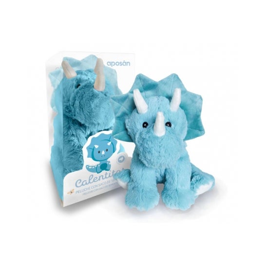 Aposán Calentitos Dino Azul 1 ud é um pelúcia com forma de dinosaurio azul projetado para proporcionar calor terapêutico a crianças e adultos. Inclui um saco removível de sementes de trigo esterilizadas, pensado para oferecer uma sensação de calor reconfortante e suavidade.